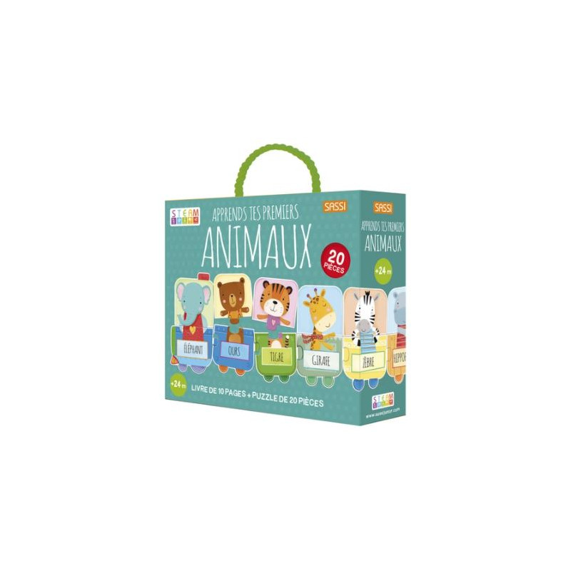 Un livre et puzzle avec 10 pièces géantes pour s’amuser à créer ton petit train des animaux.