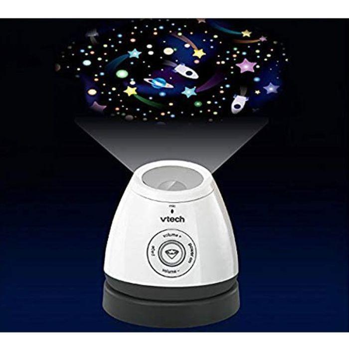Un écoute-bébé audio DECT avec projection étoilée au plafond ! Un écoute-bébé utilisant la technologie numérique DECT permettant une écoute d’excellente qualité sans aucune interférence ni grésillement pour rester en contact continu avec Bébé en toute sécurité. Unité Parents – Écran rétro-éclairé pour une utilisation optimale. – Micro intégré permettant de parler à Bébé et de le rassurer à distance. – Mode vibreur et silencieux 5 LED qui s’illuminent une à une selon l’intensité du bruit. – Contrôle du volume sonore. – Indicateur lumineux batterie faible et indicateur unité Bébé hors de portée. – Compacte pour emporter partout. Clip ceinture. Unité Bébé – Projection d’un décor étoilé au plafond avec variation de l’intensité lumineuse pour apaiser Bébé. – Socle aimanté pour ajuster l’angle de projection. – 5 berceuses contrôlables à distance aident Bébé à s’endormir paisiblement. – Un capteur mesure la température de la chambre et peut alerter les parents. – Micro haute sensibilité. – Contrôle du volume sonore. Technologie NEMO zéro émission d’ondes en mode veille. Portée de 300 mètres maximum en champ libre (50 à 60m en intérieur). Puissance maximale utilisée par l’émetteur 0.25W (250mW).