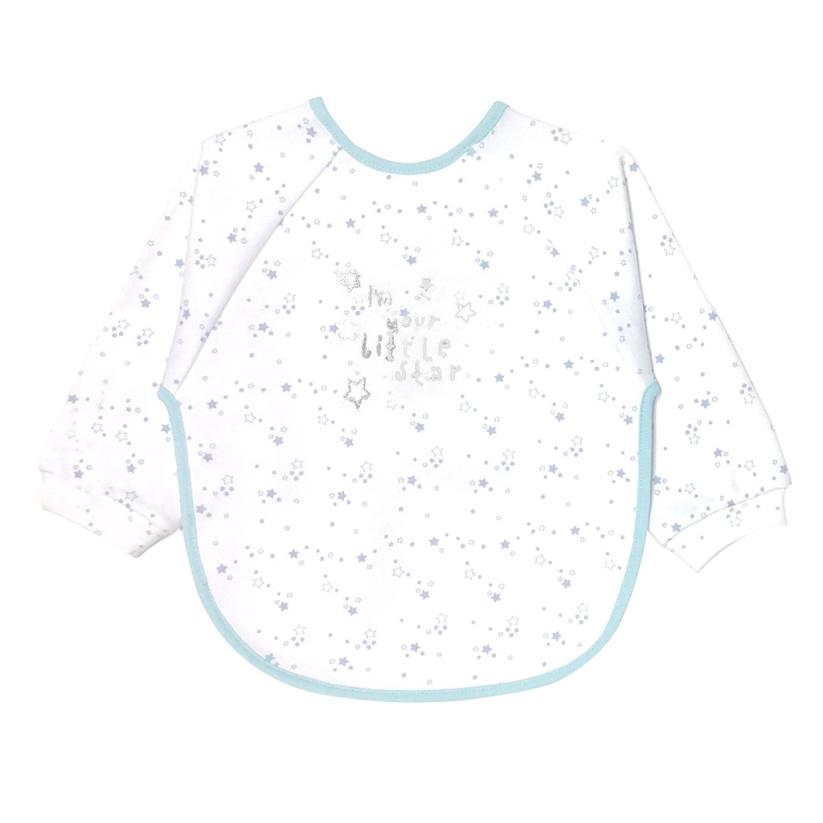 Bavoir manches longues grand modèle face coton et face p1lastifiée avec fermeture scratch sur le dos .
