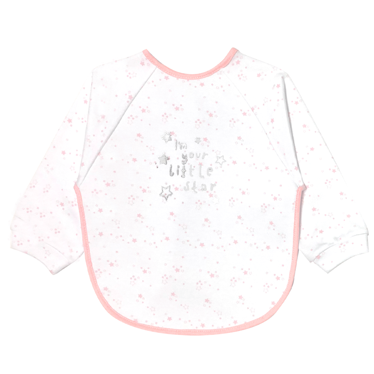 Bavoir manches longues pour bébé devant coton + envers plastifié et manches en 100% coton
