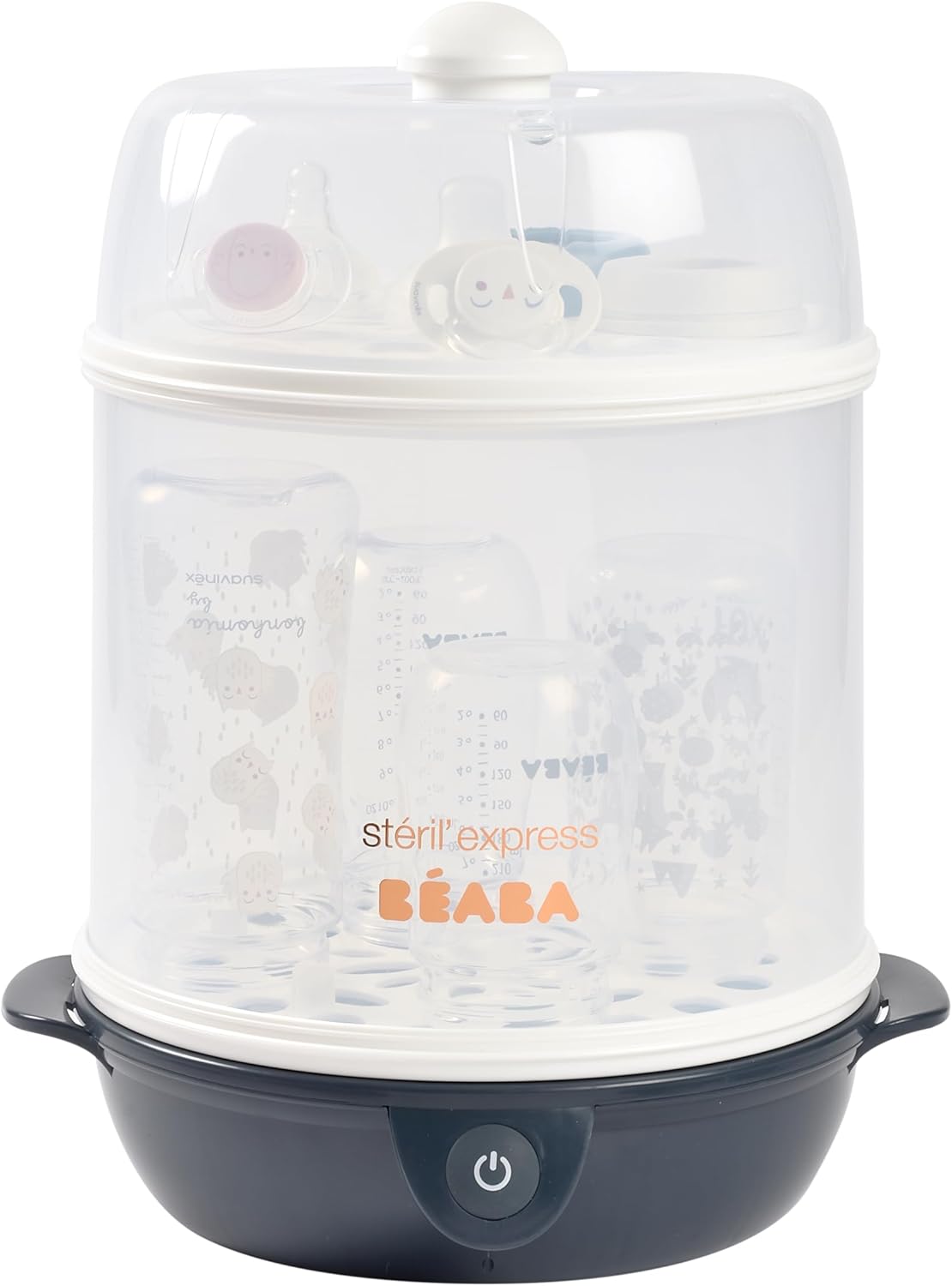 BÉABA Stérilisateur Biberons 2 en 1 Evolutif Électrique à Vapeur 2 en 1 2 Compartiments Jusqu’à 8 biberons & Accessoires Ultra rapide …