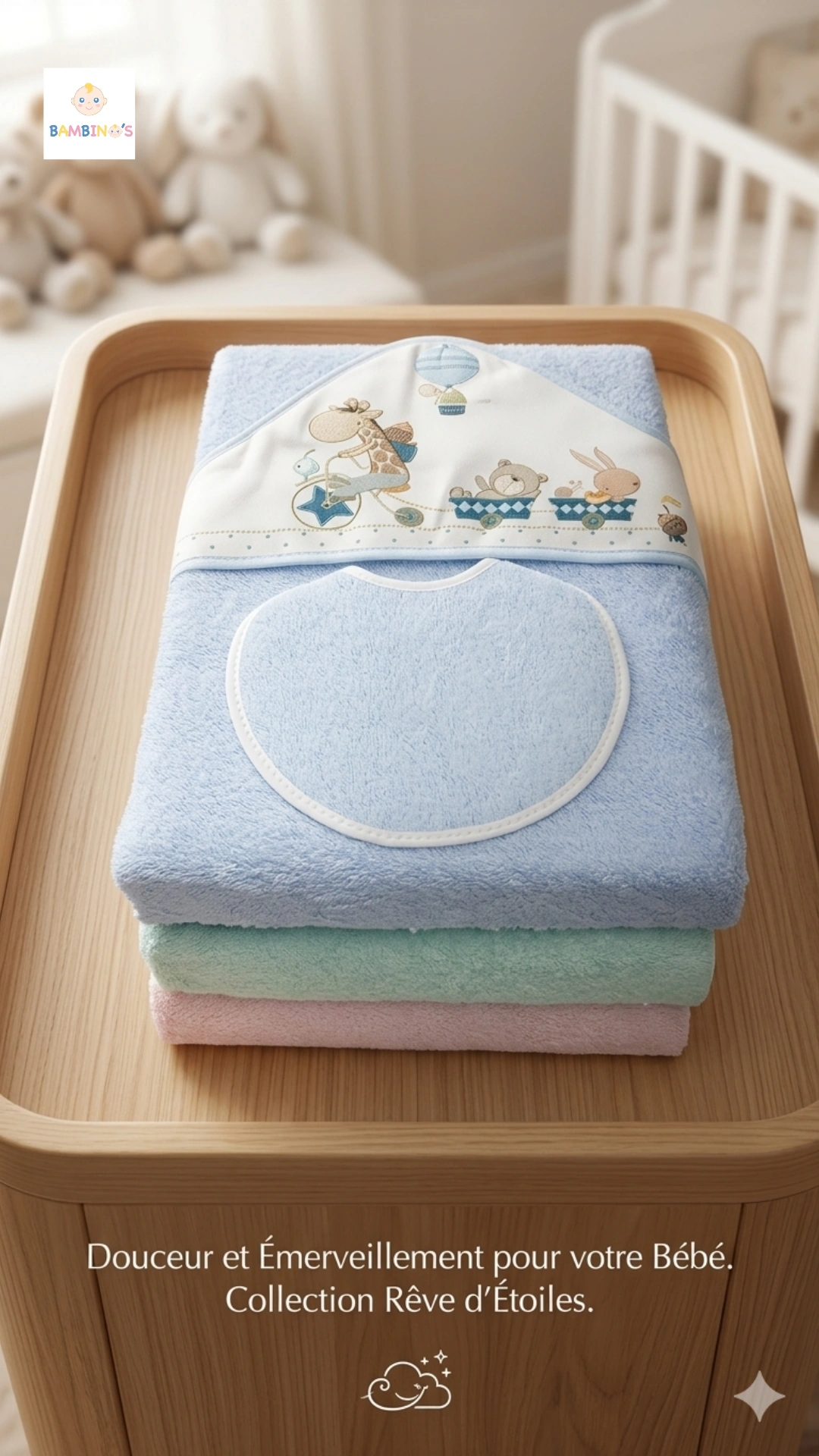 SORTIE DE BAIN 1*1M GIRAFE + BAVOIR BLEU