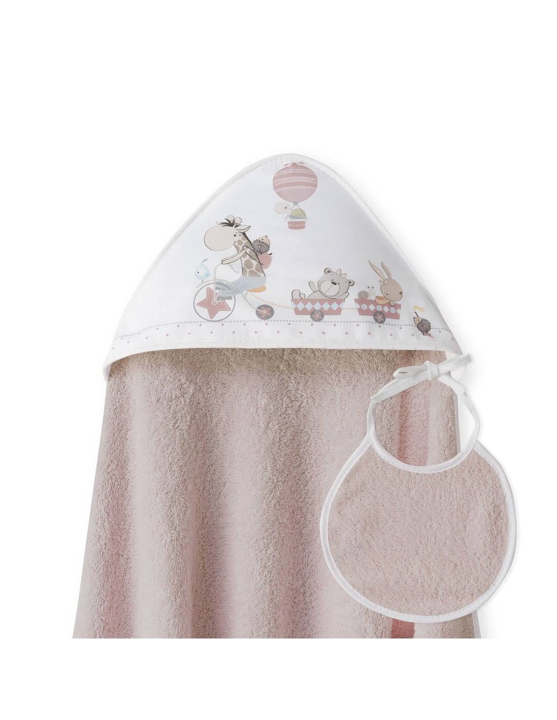 SORTIE DE BAIN 1*1M GIRAFE + BAVOIR ROSE