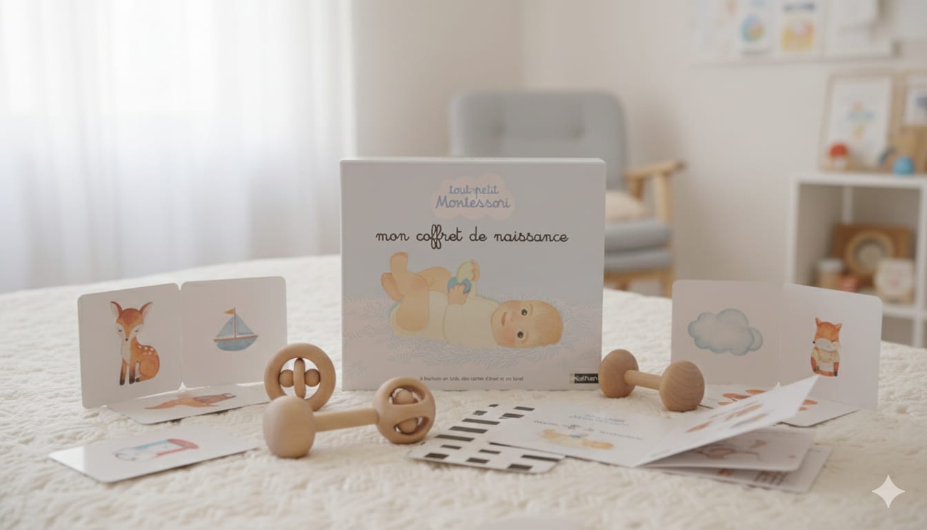 Coffret bébé Montessori en bois +carte noir et blanc