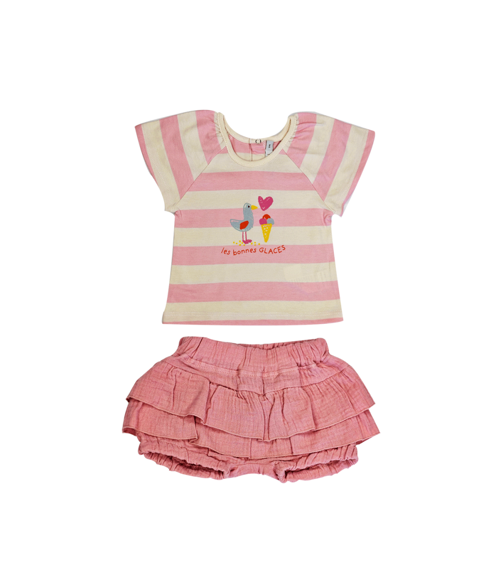 Ensemble T-shirt manches courtes et bloomer en 100% coton pour bébé – Rayé
