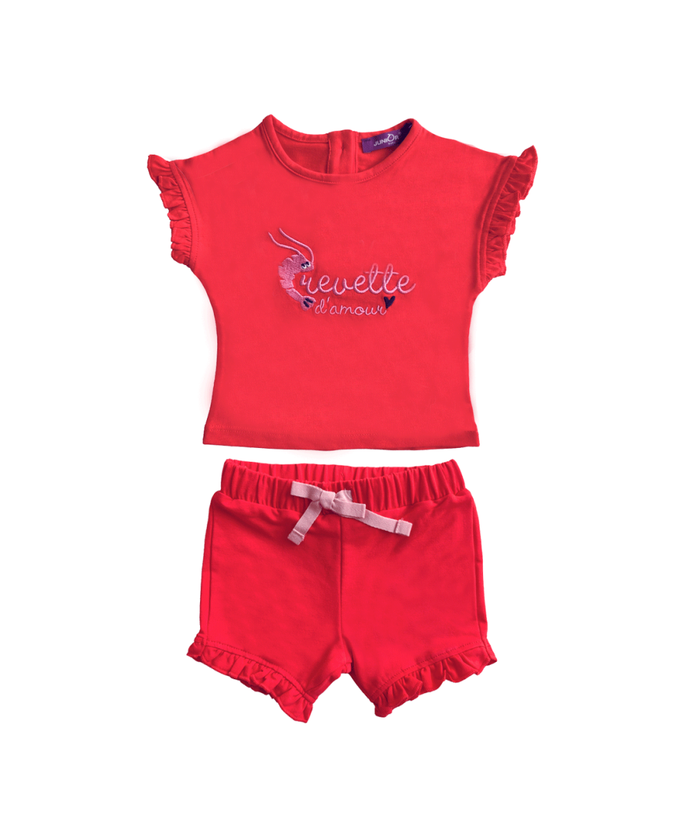 Ensemble T-shirt manches courtes en 100% coton et short en molleton pour bébé – Rouge