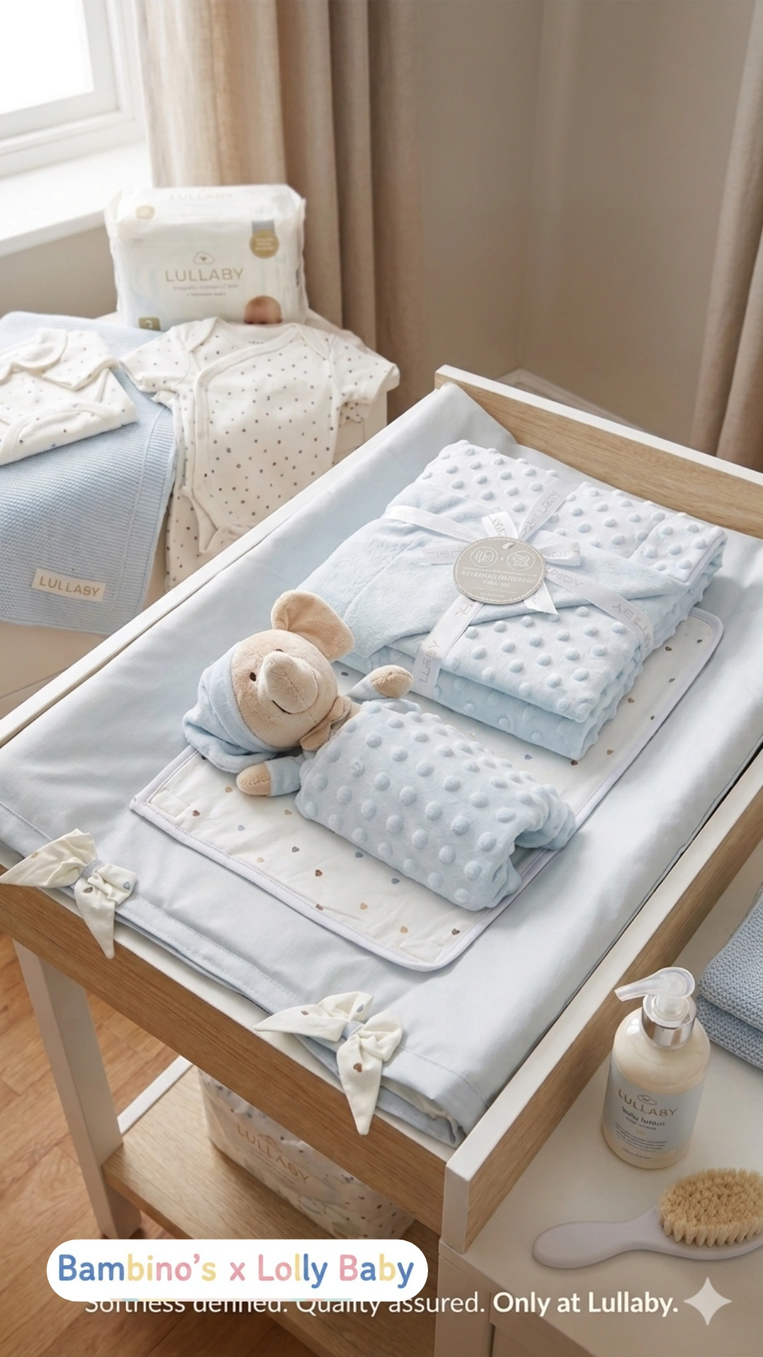Matela de change bleu ciel avec plaide a pois bleu +doudou