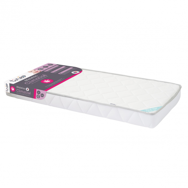 Un matelas pour équiper bébé EVOLUTIF • Face hiver tissu matelassé pour garder bébé bien au chaud. • Face été maille aérée permettant une meilleure circulation de l’air. CONFORTABLE Coeur en mousse polyuréthane