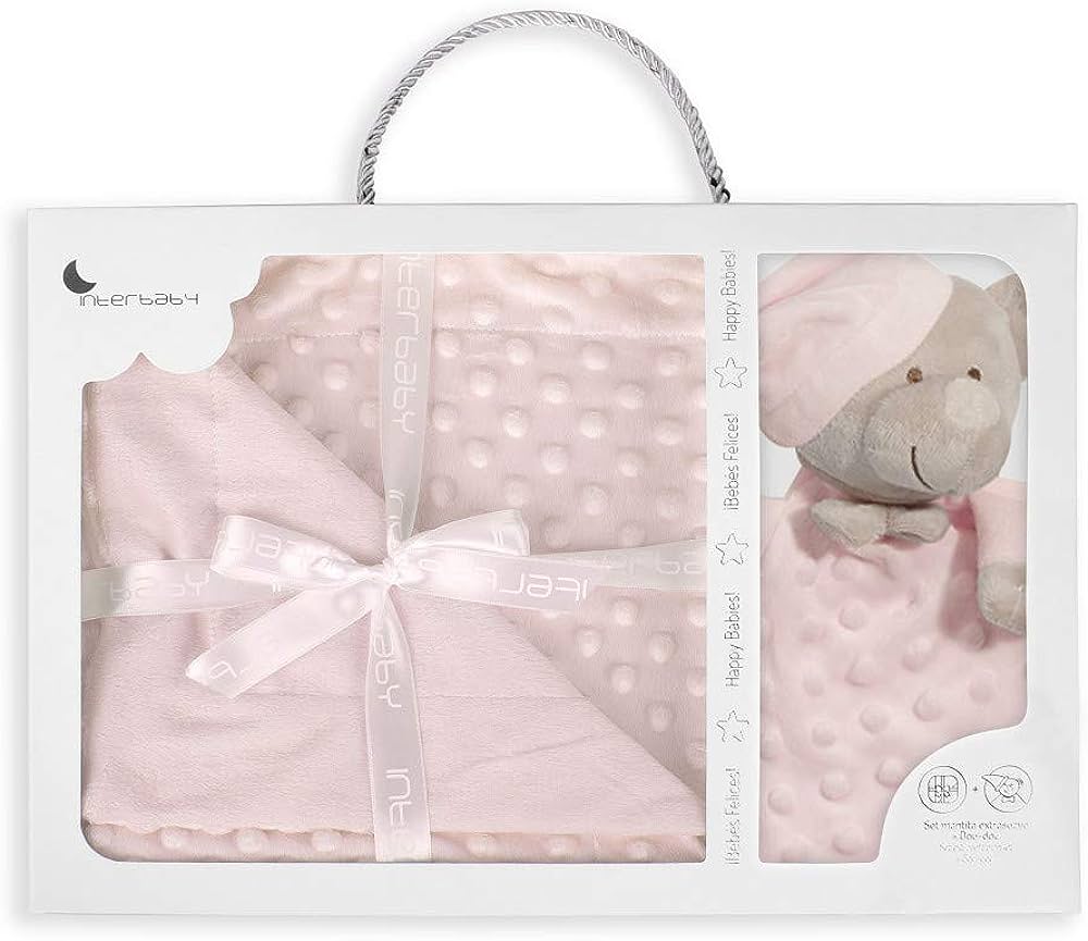 Interbaby Couverture en Bulles Coraline 80 x 110 cm + Doudou Modèle 28 x 17 cm & Cape du Bain 400 GSM Coton Terry + Brosse/Peigne Modèle Love You Rose 100 x 100 cm