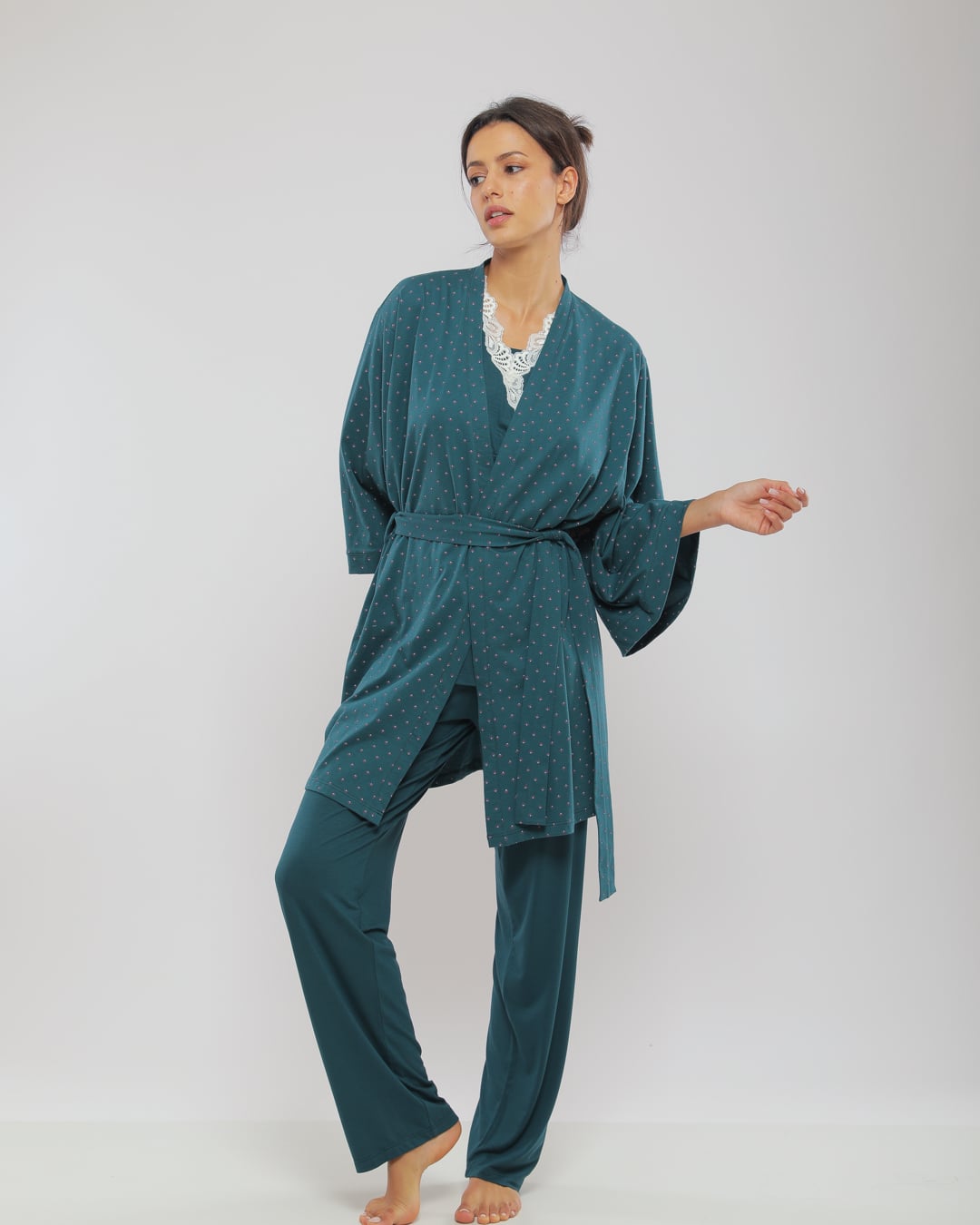 Pyjama trois pièces allaitement vert olive Secret INTIME