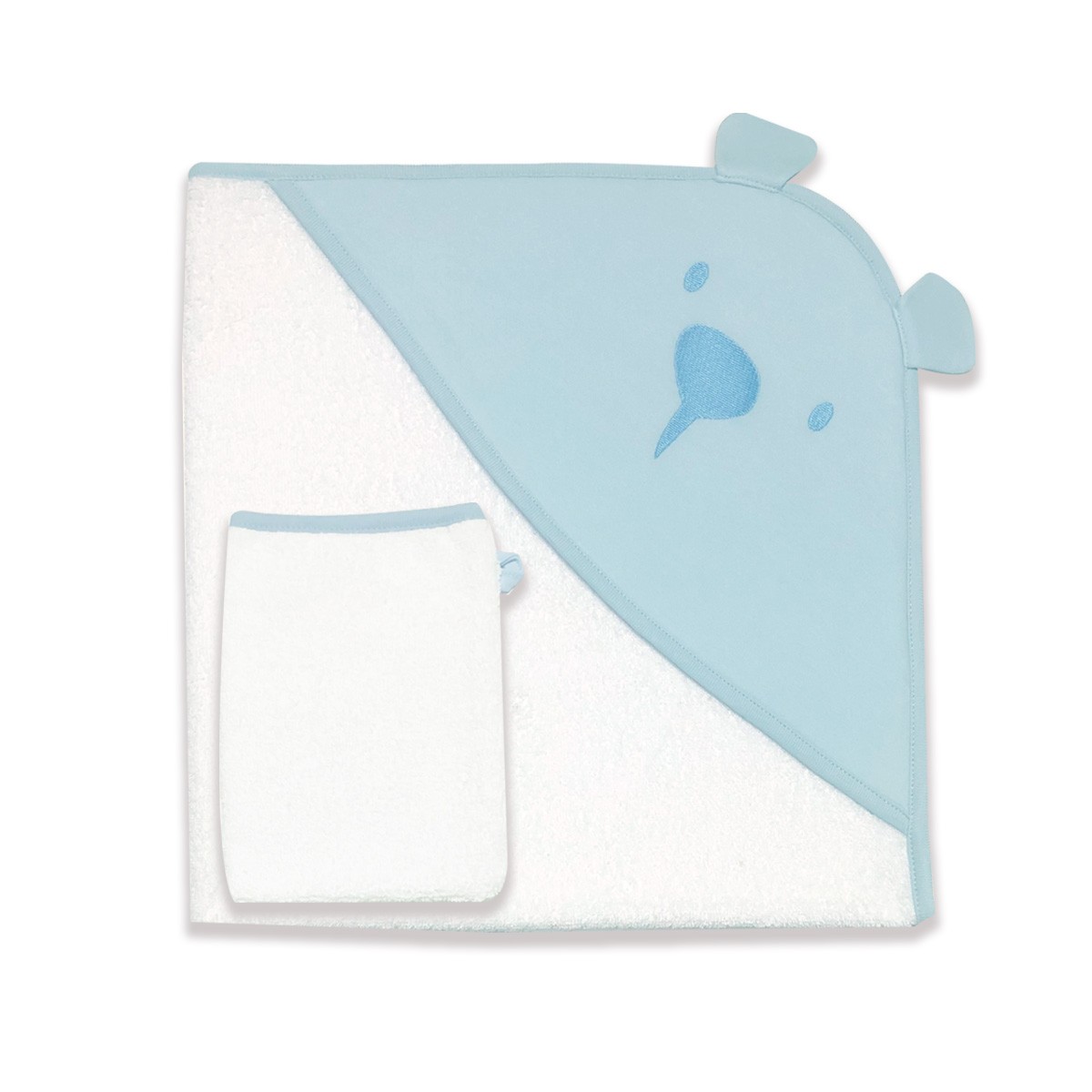Carré de bain avec capuche + gant de toilettes en éponge très doux et épais
