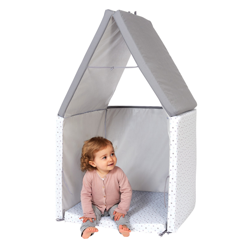 Le meilleur compagnon des heures de jeu de bébé ! Le tapis de motricité Candide offre une large surface d’éveil pour que bébé puisse jouer s’allonger s’asseoir et se retourner ! Une expérience unique pour le développement de bébé tout au long de sa croissance. ÉVOLUTIF 5EN1 Non plié il offre une surface de jeu maxi format Plié en 3 il devient un véritable matelas Plié en 4 il se transforme en maxi pouf Par un système de pliage spécifique il se transforme en tunnel Ou en cabane ! Parfait pour jouer en extérieur ! Le tapis de motricité vous accompagnera lors de vos sorties nature ou pique-niques en famille. Vous apprécierez sa base en PVC imperméable et lavable.Caractéristiques Tapis de motricité Non plié 120 x 120 cm / Plié en 2 120 x 60 x 8 cm / Plié en 3 60 x 60 x 16 cm Housse lavable en machine Dès la naissance