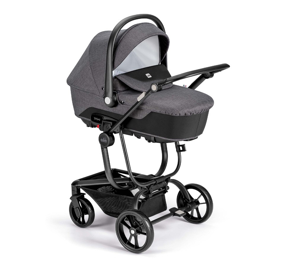 Châssis aluminium avec assise réversible (face maman 0 mois – 1 an) et face rue (1 – 4 ans)