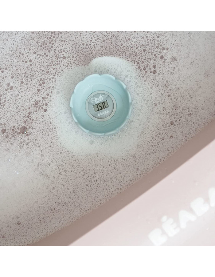 Ce thermomètre de bain bébé « Lotus Green Blue » de Beaba permet une prise rapide et précise de la température du bain et de la pièce. En forme ronde de lotus et en matière souple, ce thermomètre flotte à la surface du bain tout en étant sans risques et ludique pour l’enfant.